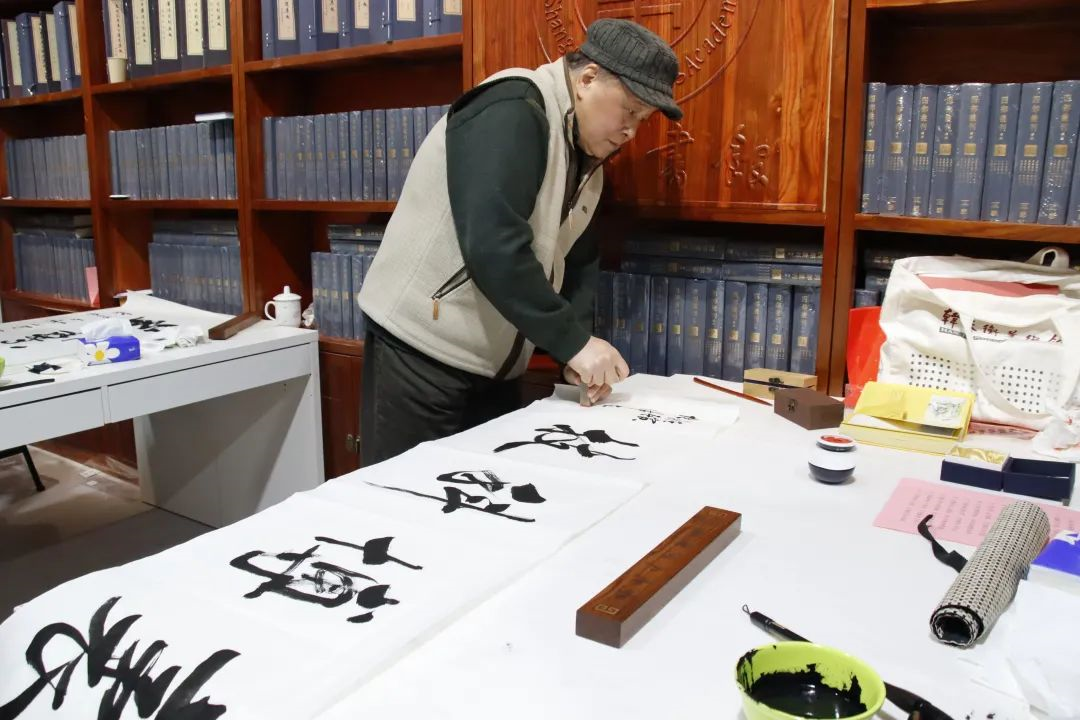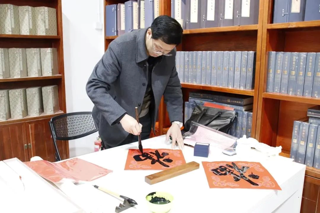 1月21日,上海江东书院春意浓浓,喜气满盈,2022长三角书法家翰墨贺新春公益笔会将家乡的祝福送到了上海。安徽省书协主席吴雪,江苏省书协副主席常汉平,上海市书协副主席张伟生、田文惠、张卫东,中青年书法家李治国、苏宗辉等齐聚一堂,写春联、送福字,带着辞旧迎新的美好祝愿,为在沪过年的群众送上浓浓的新春喜气。